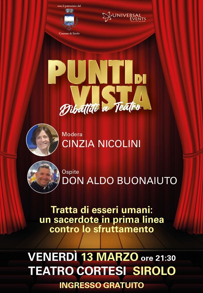 Sirolo, 10 marzo 2026 – Prenderà il via venerdì 13 marzo alle ore 21.30 presso il Teatro Cortesi di Sirolo il nuovo format culturale Punti di Vista – Dibattiti a Teatro, un ciclo di incontri pensato per portare sul palcoscenico testimonianze, esperienze e riflessioni di persone che, attraverso il loro impegno e il loro percorso di vita, hanno qualcosa di importante da raccontare alla società.