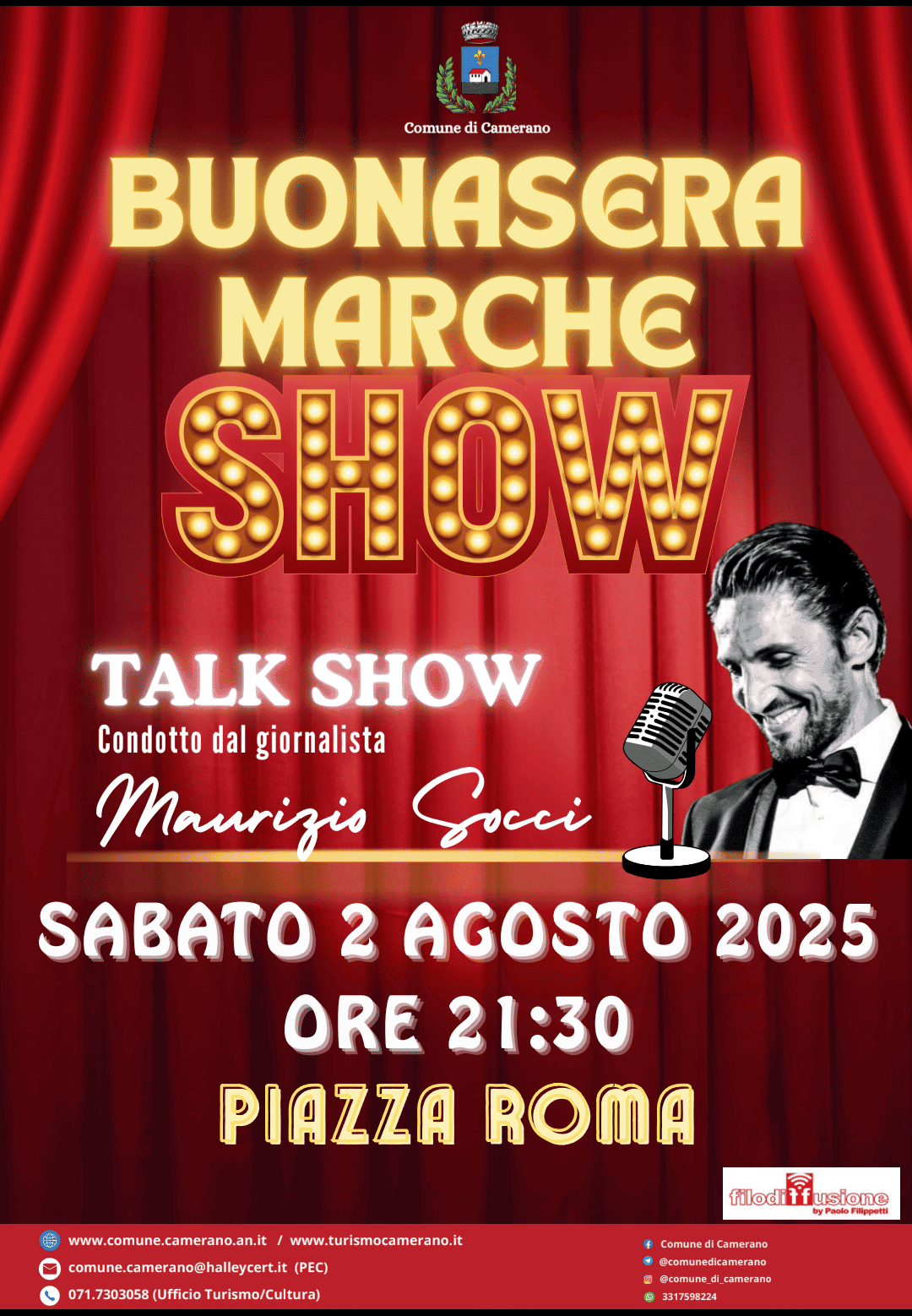 Camerano, 30 luglio 2025 – Il talk show itinerante delle Marche, Le Marche raccontate dai marchigiani: sono questi gli slogan che da oltre dieci anni accompagnano Buonasera Marche Show, il format firmato Filodiffusione e condotto dal giornalista Maurizio Socci.