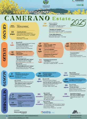 Tra i protagonisti dell’estate cameranese ci sarà anche Franco Arminio, atteso il 17 luglio in piazza Roma nell’ambito della rassegna Non a voce sola, dedicata a poesia, filosofia e narrazione. La sera successiva, il 18 luglio, piazza Roma ospiterà la tradizionale Cena sa la Guluppa, un momento di condivisione con musica e convivialità in occasione di Liberiamo Camerano.