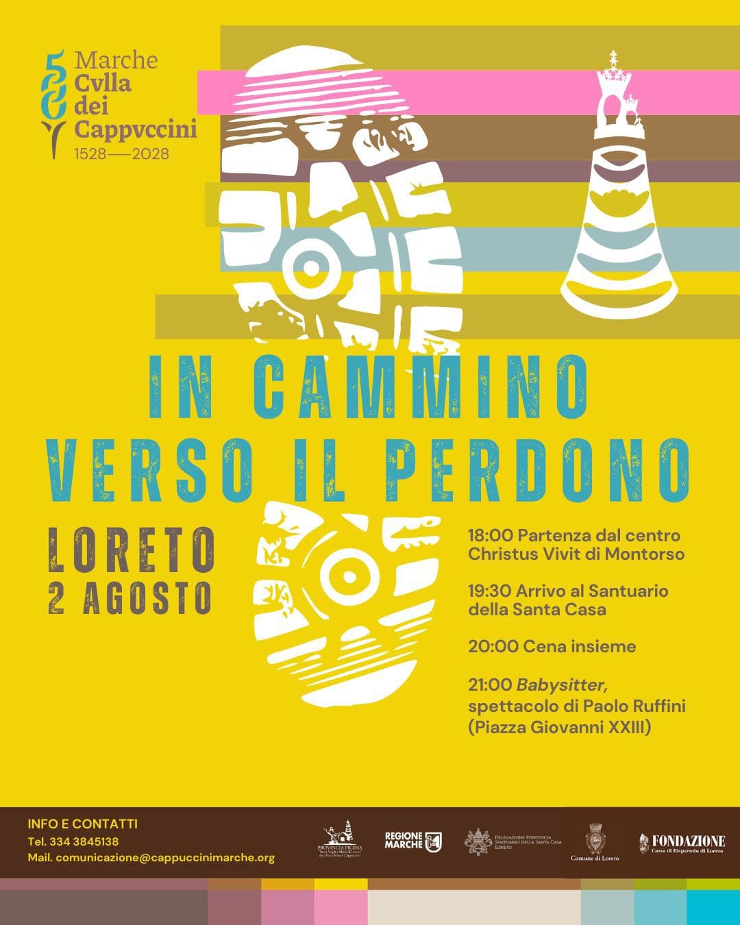 Venerdì 2 agosto Mons. Fabio Dal Cin, delegato pontificio, presiederà alle ore 11.00 la Santa Messa con i frati cappuccini del santuario. Alle ore 18.00, in occasione della giornata dedicata al Perdono di Assisi, si svolgerà uno speciale pellegrinaggio a piedi rivolto soprattutto ai giovani con partenza dal centro Christus Vivit di Montorso fino a giungere alla Santa Casa, dal titolo Il cammino verso il perdono. Concluderà la giornata alle ore 21.00 lo spettacolo dell’attore Paolo Ruffini in piazza Giovanni XXIII. Si ricorda che dalla mezzanotte del 1° agosto alla mezzanotte del 2 agosto per tutti i fedeli sarà possibile lucrare l’indulgenza plenaria, detta anche il Perdono di Assisi.