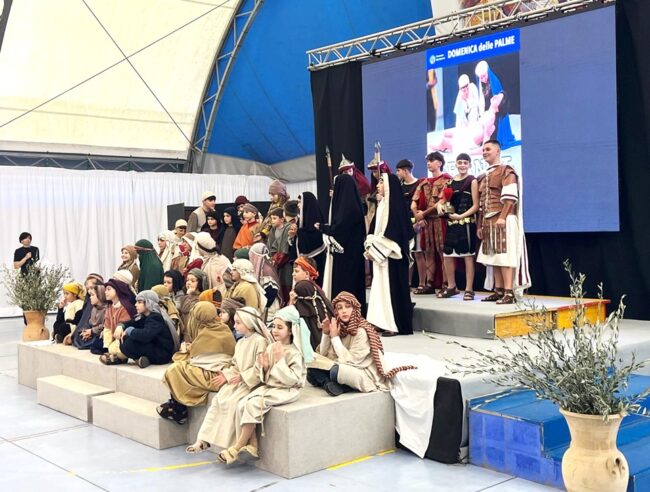 Loreto, 30 marzo 2026 – Tensostruttura gremita e commozione per la 4ª edizione di Grandi come bambini, la Passione di Gesù raccontata dai più piccoli che si è svolta ieri pomeriggio a Villa Musone di Loreto. Si è dato inizio così ai riti della Settimana Santa nella Città mariana, in attesa che nella serata del Venerdì Santo vada in scena La morte del Giusto, ormai storica ricostruzione delle ultime ore di Cristo giunta alla 49ª edizione. E proprio da una costola della suggestiva rappresentazione maggiore, oggi candidata al riconoscimento di Patrimonio immateriale dell’Unesco, è nata l’idea di affidare anche alla sensibilità e allo sguardo dei più piccoli il racconto di uno dei passaggi più significativi della fede cristiana.