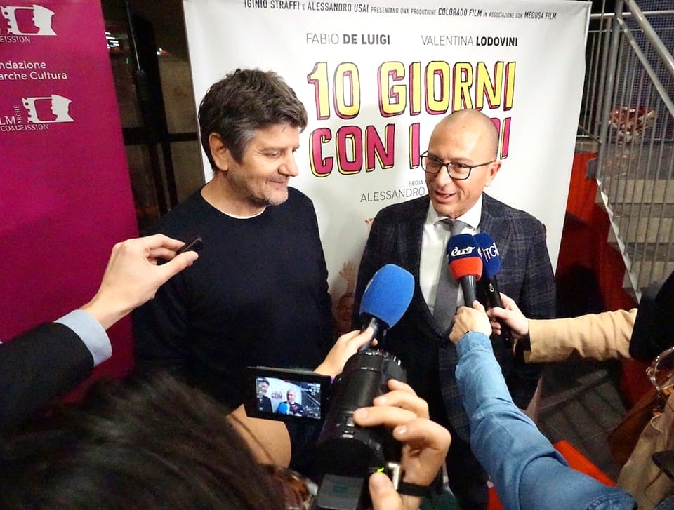 Così Fabio De Luigi ha salutato il grande pubblico del Goldoni durante la presentazione del suo nuovo film 10 giorni con i suoi, e su invito di Andrea Agostini Presidente della Fondazione Marche Cultura Film Commission a girare il prossimo film nella Regione Fabio De Luigi ha detto «Mi piacerebbe, ho tanti colleghi che hanno lavorato nelle Marche e mi hanno raccontato che sono stati benissimo, verrei molto volentieri a girare un film qui, vediamo…»
