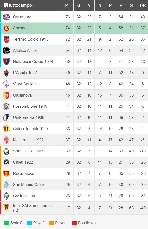 ANCONA (4-2-3-1): Salvati, Rovinelli, Zini (40′ Pecci), Petito, Battista (56′ Cericola), Gerbaudo, Kouko (72′ Teraschi), D’Incoronato (85′ Polenta), Gelonese (59′ Miola), De Luca, Calisto A disposizione: Mengucci, Ceccarelli, Miola, Bonaccorsi, Pecci, Cericola, Attasi, Polenta, Teraschi Allenatore: Agenore Maurizi