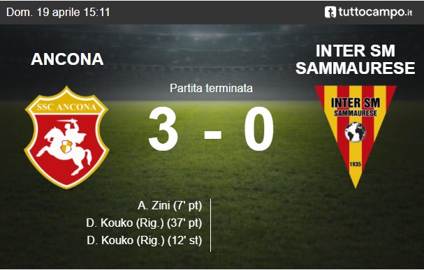 19 Apr Ancona, vittoria al Del Conero contro la Sammaurese