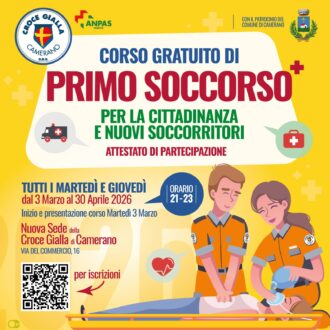 Camerano,, 28 febbraio 2026 – Un’importante occasione di formazione e impegno civico prende il via a Camerano. Con il patrocinio del Comune di Camerano, la Croce Gialla Camerano, in collaborazione con ANPAS Marche, promuove un corso gratuito di Primo Soccorso aperto a tutta la cittadinanza e a chi desidera avvicinarsi al mondo del volontariato.