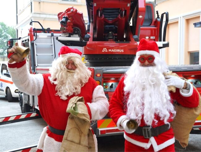 I Babbo Natale dei Vigili del Fuoco, accompagnati dalla direzione dell’ospedale e dalle Patronesse del Salesi, hanno visitato i piccoli ospiti del pediatrico per confermare l’iniziativa di solidarietà, avviata alcuni anni orsono, allo scopo di regalare un momento di svago e spensieratezza ai piccoli pazienti ed alle loro famiglie e di divulgare la cultura della sicurezza sin dalla tenera età.